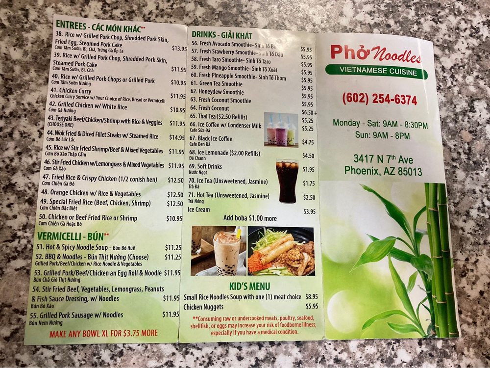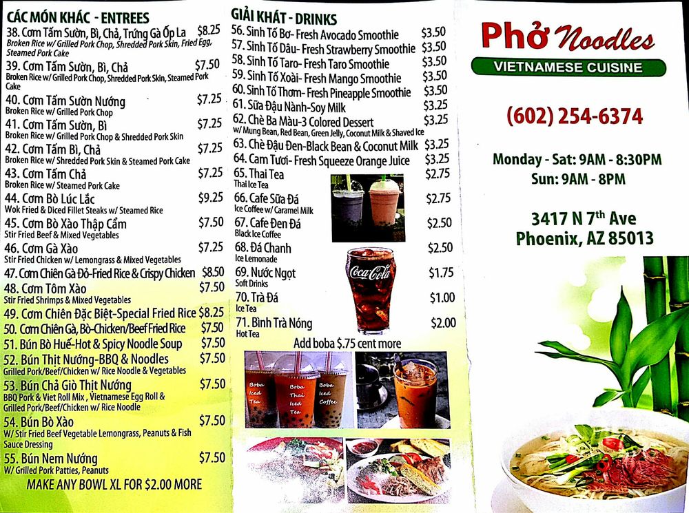 Pho Noodles, located in Phoenix, AZ, is a Vietnamese noodle restaurant offering a range of options, including vegan choices. Customers rave about the delicious pho broth, perfectly seasoned without needing additional sauces. The broth is well-flavored, the meat is tender, and the noodles are cooked just right. The menu also includes items like crispy noodles and spring rolls, all served quickly with good service. The atmosphere is casual with a focus on good food and attentive staff. With a variety of seating options, including outdoor and private dining, Pho Noodles is a great choice for a satisfying meal. Don't miss out on their Vietnamese coffee if available – it's a must-try. The positive reviews reflecting consistent quality and flavor make Pho Noodles a destination worth revisiting.